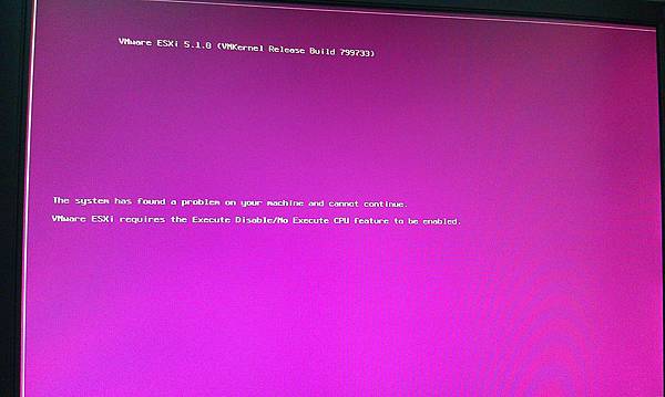 VMware ESXi requires the Execute Disable/No Execute CPU feature to be enabled.」
