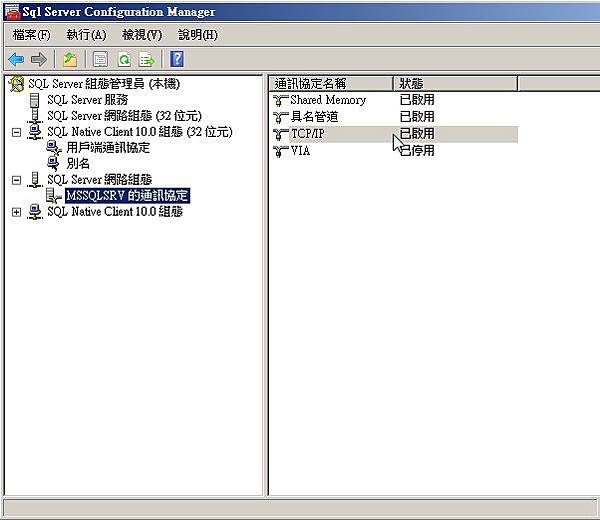 確認DB相關Port是否已經開啟。然後點選TCP/IP進行內部修改。