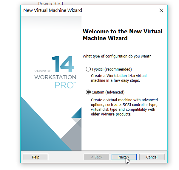 首先,我們先來建立個新的虛擬機器,建議選擇Custom(advanced)mode,如果對Workstation不熟的就選預設(Typical)吧