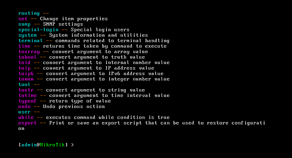 當然你也可以像我一樣,就先看看裡面有哪些list可以選,RouterOS沒有help可以打,所以預設就打「?」即可